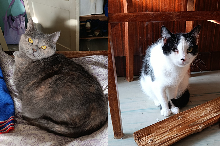 Умная, послушная и добрая, Дыма тут же пошла на контакт с человеком и камерой. Одноглазая Зося сначала осторожничала с гостьей, но уже через 20 минут охотно давала себя гладить. |