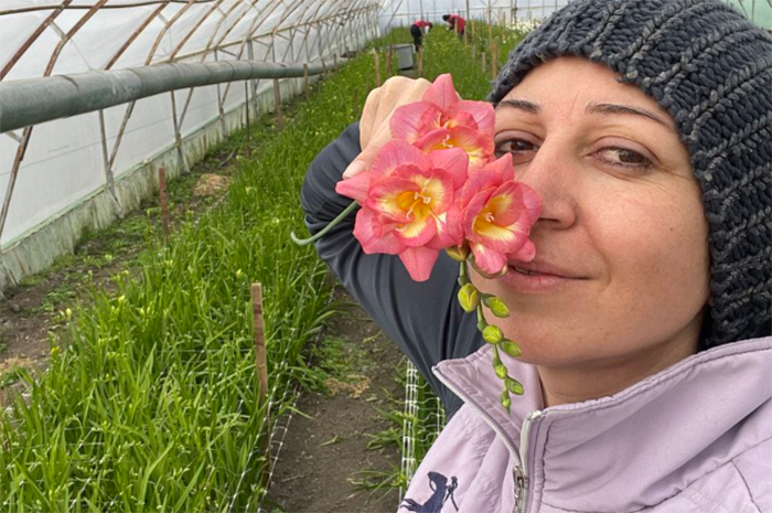 У Надежды и её семьи сейчас в разгаре горячая уборочная страда. Они уже семь лет выращивают в собственной теплице цветы, предлагая покупателям нежную фрезию и очаровательного ранункулюса (азиатского лютика - это многолетнее клубневое растение семейства лютиковых, - прим. ред.).