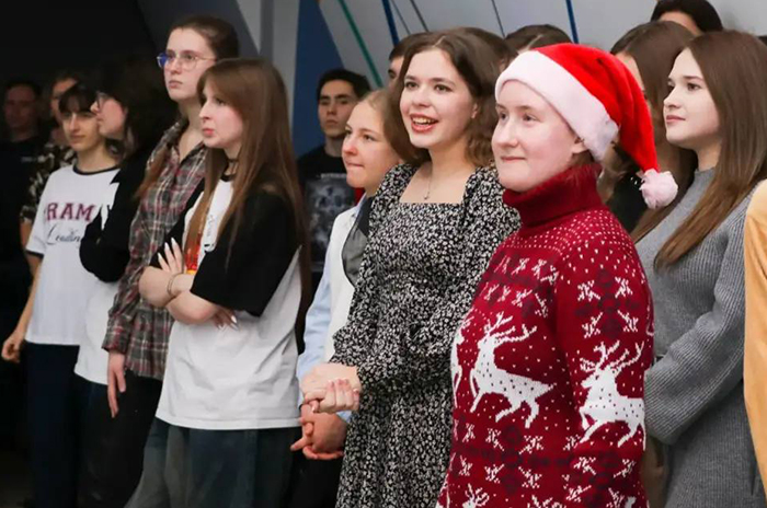 | В декабре ребята в «Призме» не только учились, но и весело готовились к Новому году. София - вторая справа. |