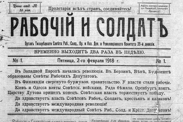 Живёт на нашей малой родине свидетель, которому 108 лет. Он видел, как хутор Тихорецкий заселялся, как становился городом, как появился одноимённый район. Это — газета. Сегодня ее зовут «Тихорецкие вести», а в 1918 году издание зародилось как «Рабочий и солдат».