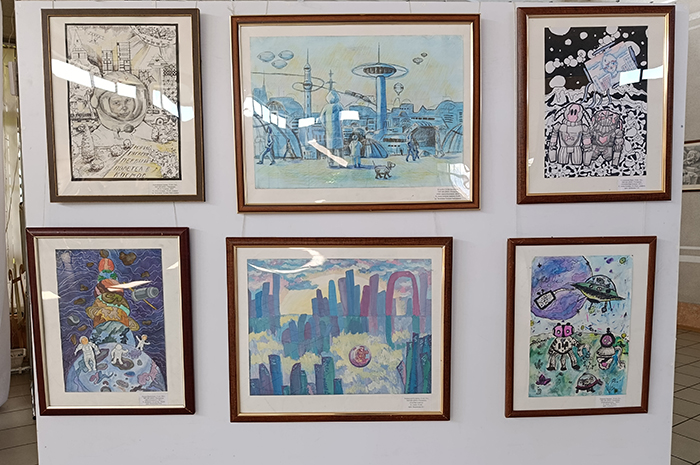 Стили, жанры и герои разные. Так, на космической выставке есть ракеты, космонавты, корабли, планеты, пришельцы, летающие тарелки, инопланетяне, другие цивилизации и даже драконы. Не обошлось, разумеется, без Юрия Гагарина и его фантастической улыбки.