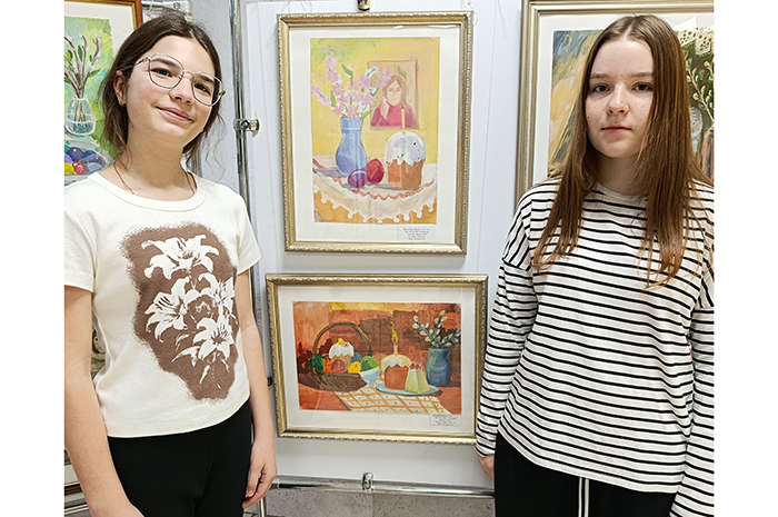В «Пасхальном» зале - четыре начинающих художницы. Им по 12 лет, и все они учатся в третьем классе художественной школы, а в шестом - общеобразовательной.