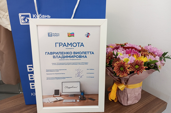 Корреспондент газеты «Тихорецкие вести» Виолетта Гавриленко вошла в число лауреатов VIII Всероссийского творческого конкурса, посвящённого финансовой грамотности и формированию финансовой культуры населения.